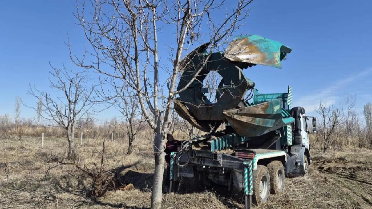 IĞDIR - Iğdır'da kesilmesi planlanan 15 yaşındaki 77 kiraz ağacı, özel söküm makinesiyle taşınarak yeniden toprakla buluşturuldu.
