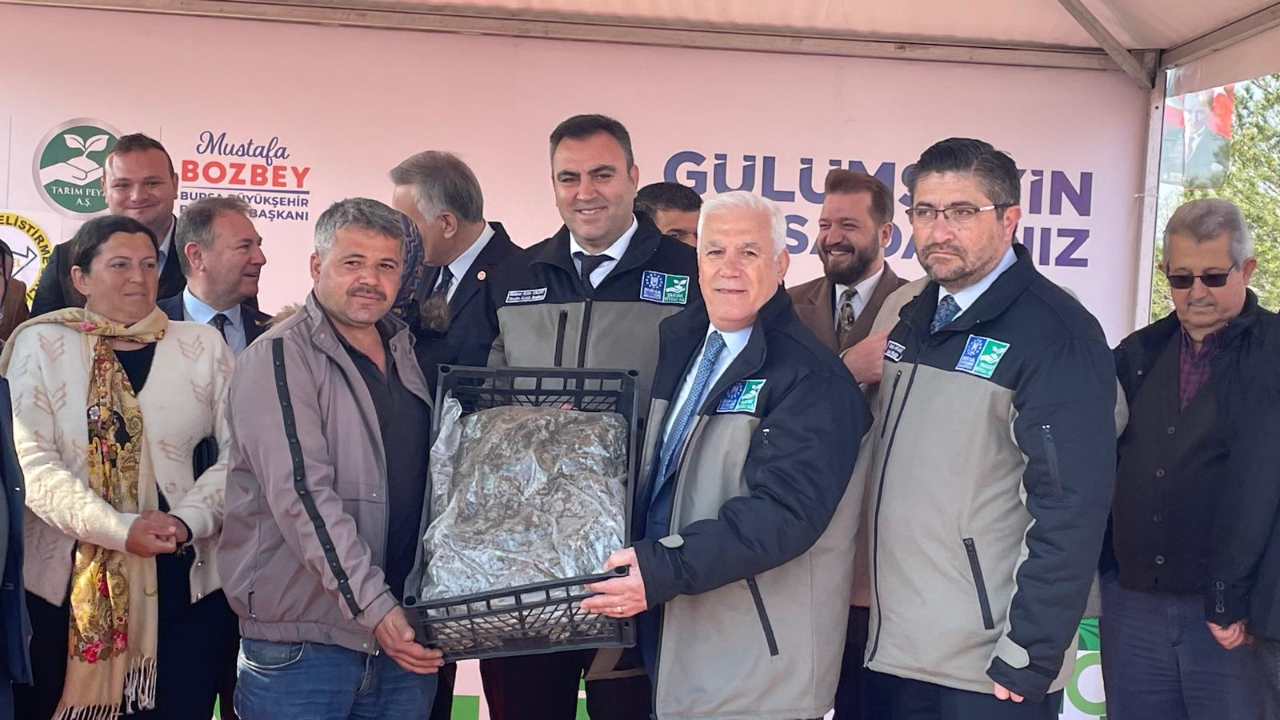 Bozbey, Hüdevandigar Kent Parkı'nda düzenlenen çilek fidesi dağıtım töreninde, Keles, Osmangazi, Orhaneli, Kestel ve Yıldırım gibi ilçeleden gelen çiftçilerle bir arada olmaktan mutluluk duyduğunu belirtti.