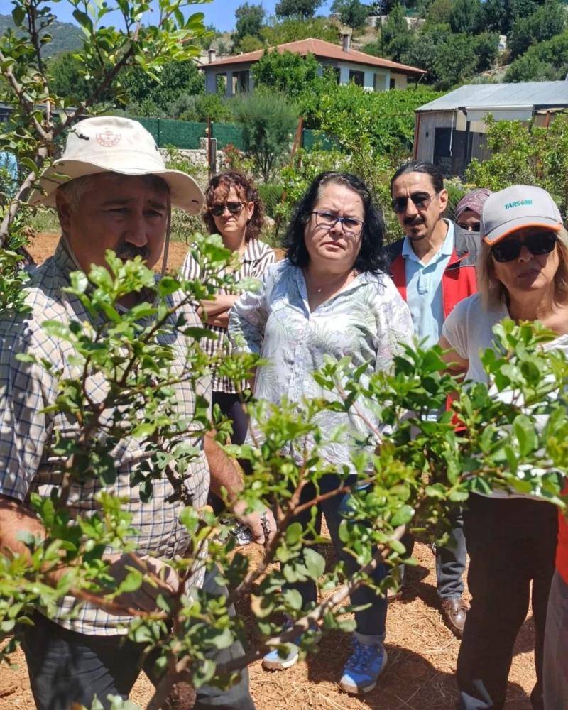 MUĞLA- Muğla İl Tarım ve Orman Müdürlüğü tarafından, Fethiye'nin Kaya Mahallesi'nde kurulan sakız ağacı bahçesinde düzenlenen tarla gününde, üreticilere bu değerli bitkinin yetiştiriciliği ve yüksek kazanç potansiyeli hakkında bilgiler verildi.